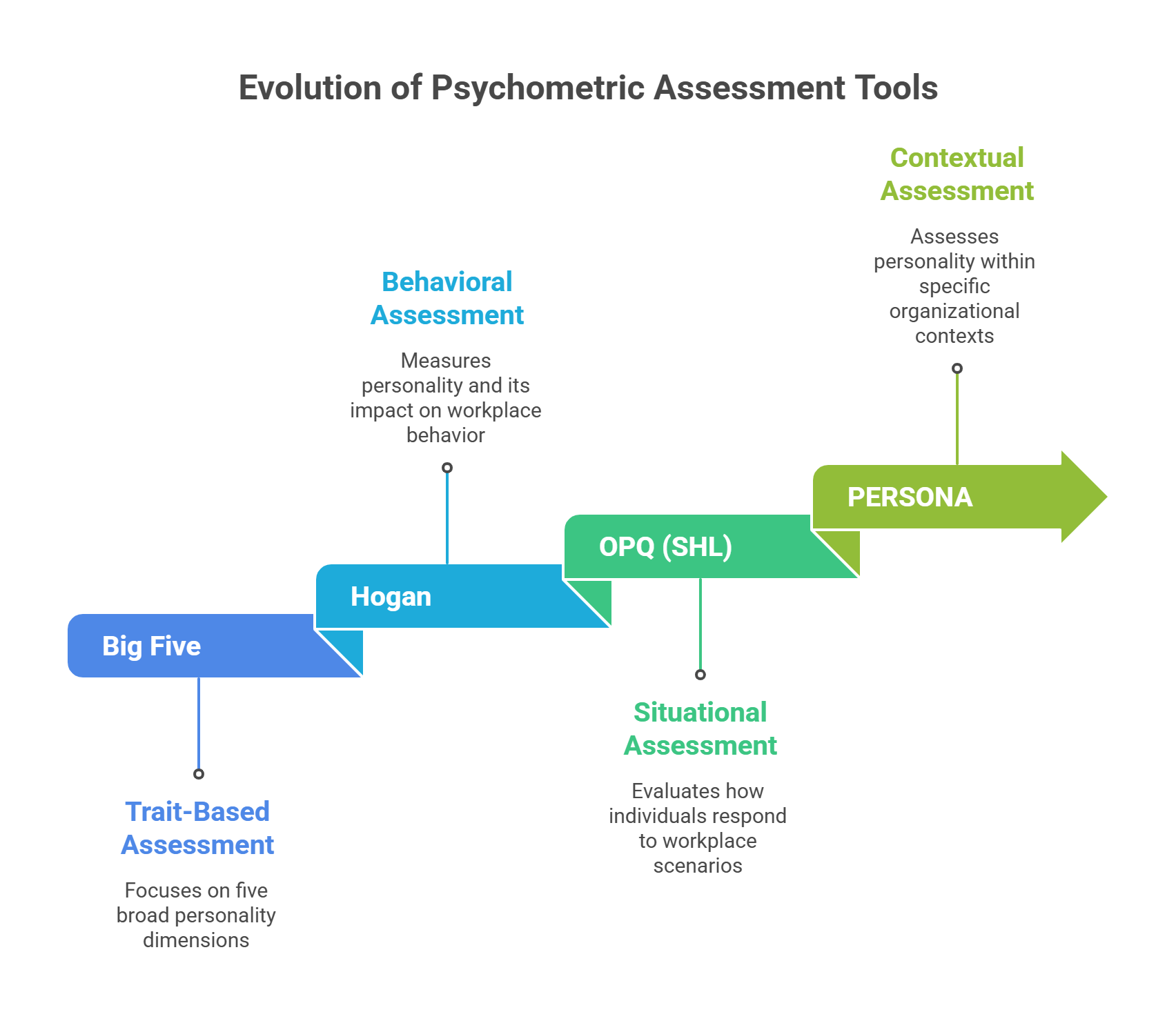 A clear, decision-maker comparison of Big Five, Hogan, OPQ, and PERSONA, showing how psychometrics is evolving beyond static trait measurement.