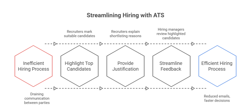 If only the amount of emails between recruiters and hiring manager could be reduced to zero. It would improve the efficiency significantly. A hiring manager could simply login and see the candidates that the recruiter has highlighted and see the justification for why a candidate has been shortlisted. But this is hardly the case. The iterative process between the two parties is draining according to the recruiters. Finding time with the hiring manager is not easy as they are busy working on multiple issues in their department or team. So getting them on a call to discuss a shortlist or getting feddback from them is not easy.